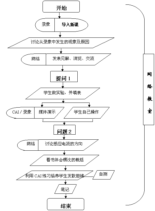 《楞次定律》是通过实验探究,再总结规律。如果这些都依赖于教师的介绍,则易使学生习惯于被动地接受,而不如让学生主动从网络中去查寻获取知识。另外,对本课中的实验和对实验的理解是教学重点。对这两个问题,如果按照传统的授课方式,由教师一步一步带着去分析,往往容易束缚学生的思维;如果在课堂上让学生以传统的方式展开讨论,虽然比前一种方式能够发挥学生的主体性,但是受到时间和空间的限制,能够有机会发表自己见解,跟教师及同学直接交流的人数有限。可见,这两种常用的传统课堂模式都不能达到给每个学生以充分展示的空间的效果。而这个,网络可以做到!所以,为了充分发挥学生在学习中的主体性作用,实现学生自主探究,这节课决定采用网络课件的形式。