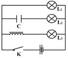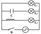1.如图所示电路中,三只电灯的亮度相同,如果交流电的频率增大,三盏电灯的亮度将如何改变?为什么?