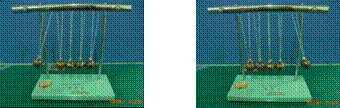 [课堂互动演示]:学生观察如图所示的碰撞球现象。