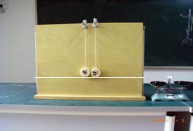 这个实验一上来就能吸引学生眼球。分别拉起1个,2个,3个,4个放开后让其相碰撞,观察碰撞前后的对称运动现象。可以让学生用自已的物理语言来描述以上现象。学生会提出运动小球的速度,运动小球的动能,运动小球的高度,运动小球的能量可能不变的想法。