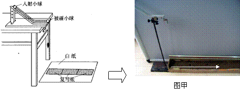说明:如图甲原装置水平要铺设白纸和复写纸,关键是碰撞小球要反复弹跳,落点不清晰,影响集体实验效率和精度。改变为用光具座纸盒子填细沙长槽来替代。小球一落就陷下细沙里,落点单一清晰准确,非常利于测量。而且小球在实验室里也不会到处乱滚。这个填细沙长槽还可以用于如图丙的“爆炸类”碰撞的实验,实验简便,效果也是非常突出的。
