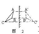 5、在图上1中画出物体ABC在平面镜中所成的像(答案见图2)。