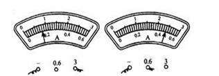 三个接线柱中红的表示让电流流入,黑的边上标有“-”表示让电流流出。接线柱旁的数值表示接入该接线柱时的量程(即满刻度时的电流数值)。
