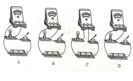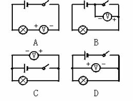 (3)下图是用电压表测灯泡两端电压的电路,其中电压表使用正确是( )