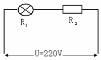 分析:显然这是一个串联电路,两端的电压为220伏,电路中的电流为0.2安,根据题意,画出下面的电路图,可由欧姆定律求出电路中的总电阻,再按串联电路中的总电阻与分电阻的关系,即可求得。以R=R1+R2 为解题思路。