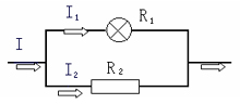 引导学生分析,电路中的总电流为10安,而100欧的电灯R1只允许通过2安的电流,为了保证此电灯接入电路中使用不致烧坏,因此必须并联一个适当的电阻分流。如下图: