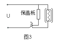 生:图3,按下磁控开关,保温板断开,发热板接入电路,电饭锅煮饭,饭煮熟后,温控开关自动跳起,发热板断开,保温板接入电路,电饭锅保温。