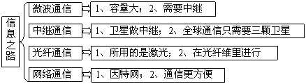 过程方法:通过了解卫星通信、光纤通信、网络通信的知识,提高学生应用物理知识解决实际问题的能力。 | ||||||||