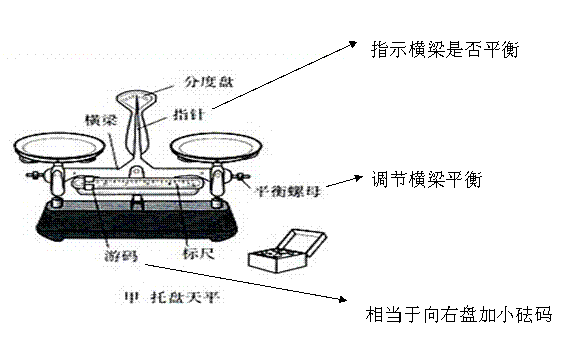 教师:下面我们来学习一下托盘天平的使用方法,托盘天平是比较精密的测量仪器,所以为了保持天平的精确度,我们在使用天平之前要牢记几条要求。