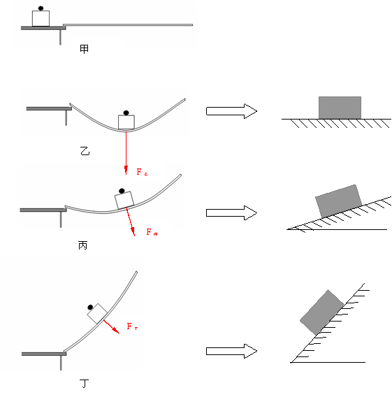 怎样证明“放在斜面上物体对斜面的压力小于物体的重力”呢?我们可以作为一个课题进行探究。