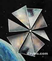 俄罗斯潜艇用一枚经过改装的“波浪”型导弹,名为“宇宙-1”号的太阳帆飞船装在导弹弹头中,其中的太阳帆在发射过程中处于折叠状态。当导弹弹头在液体燃料发动机的推动下,进入远地点约1200公里的太空轨道后,飞船与弹头分离,并缓缓地张开了两个花瓣状、总直径约26米的太阳帆。这艘太阳帆飞船在近地轨道飞行约25分钟后,按预定计划返回了地球,并准确降落至俄堪察加半岛。太阳帆飞船这一概念诞生于20世纪20年代,是一种利用太阳光的压力进行太空飞行的航天器。由于太阳光子具有源源不断、方向固定等特点,借助太阳帆为动力的航天器无须携带任何燃料,在太阳光子的撞击下,航天器的飞行速度会不断增加,并最终飞抵距地球非常遥远的天体。根据理论计算,直径约300米的太阳帆可使总重约0.5吨的飞船在200多天内抵达火星。