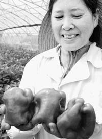 黑龙江农业科学院园艺研究所长期以蔬菜种子为材料进行卫星搭乘实验。从1987年至今,他们已经培育出包括青椒、番茄等品系在内的太空蔬菜品种。太空育种是农学专家利用返回式卫星和高空气球搭载植物种子,利用太空高真空、微重力等特点,优化种子的基因构造。种子返回地面后,科学家再经过连续筛选,育种结果,繁育太空蔬菜。图为黑龙江农业科学院园艺研究所的专家郭亚华手捧着“太空椒”果实欣喜不已。