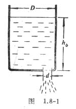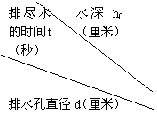 盛水圆柱形容器底部有一圆形排水孔(如图1.8-1),对于容器中深度为h0的水来说,从容器中排尽水所需的时间t与孔的直径d的关系是什么?请对表中的实验数据进行分析,得出t和d之间的关系。