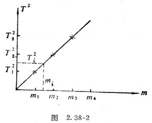 ),由T2-m图线,根据Ti找到相应的惯性质量mi。在这里mi是以1个砝码的质量为质量单位进行量度的。如图2.38-2所示。