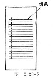 如图2.23-5所示,这样梳齿式纸框就做好了。使用时只要将齿条被划断的一边的板紧靠着绘图板,小球下落时将四根纸条压到了纸板的反面,球心位置就找到了。这种方法不需要将绘图板靠紧小球所经过的位置,也不需要将纸框对准小球的落点,学生实验操作极其方便。