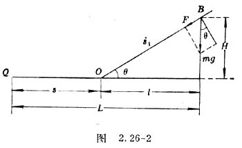 如图2.26-2所示,质量为m的滑块从高度为H的斜导轨上的B点自由滑下,经过斜导轨和水平导轨间的圆滑连接部分沿水平导轨继续滑行一段距离S后停在Q处。将斜导轨末端圆弧与水平导轨相切的点记为O点,斜导轨与水平导轨间的夹角为θ。由于滑块是自由下滑,滑块在斜导轨上做初速为零的匀加速运动,设其加速度为a1,滑块受到的下滑力F是其所受重力沿斜面的分力mgsinθ,受到的阻力是滑动摩擦力μmgcosθ,μ为滑动摩擦系数,由牛顿第二定律,有