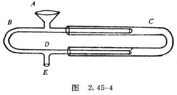 3.图2.45-4是一种实验室测定声音波长的仪器。它由两根U型空心玻璃管相互套在一起制成。左边的U型管两侧各开了一个口A和E,A制成漏斗状。把要测量的声源放在漏斗A旁,以便汇集声波使之进入玻璃管。声波进入后分成ABD和ACD两路,然后在出口处E得到加强或削弱。调节U型管插入的深度,即改变了声音通道的长度。如果这两个通道的长度相等或它们的长度差等于声波半波长(λ/2)的偶数倍,就可以在管口E处听见声音的增强;如果两通道的长度差为声波半波长的奇数倍,则将感觉到声音在减弱。