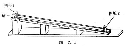 1.在桌面(或地面)上用木块把槽板垫成斜面(为什么中间要垫1-2块?)。在与槽板长度相同的纸条上画出16条以上的、十分清晰的等分线,再把纸条贴在槽板侧面上。如图2.15所示。