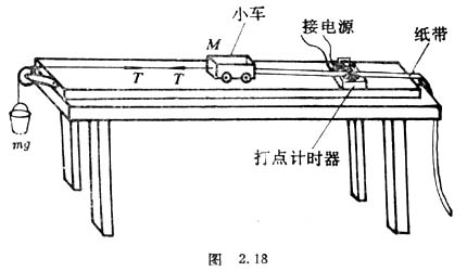 1.用天平测出小车质量m,在砂桶内加适量的砂,用天平测出砂和桶的总质量m1(要保证m1≤0.05m。把打点计时器固定在长木板上(见图2.18)。