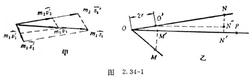 矢量图应如图2.34-1甲,若P为入射球碰前落点,M、N分别为入射球和靶球碰后落点,M′、N′为M和N到OP线段的垂足,O′N′为从O′向NN′作的垂线。则动量守恒时必有: