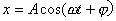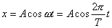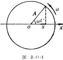 (1)式可用质点在以平衡位置为圆心,以振幅A为半径的圆周上做角速度为的匀速圆周运动来表现,质点在时刻t所在的位置在横轴上的投影到圆心的距离就代表位移的大小(图2.41-1)。如果实验证明这个关系成立,就证明了简谐运动的位移随时间作余弦变化。若测得了A和T的值,就可写出位移的数学表达式。