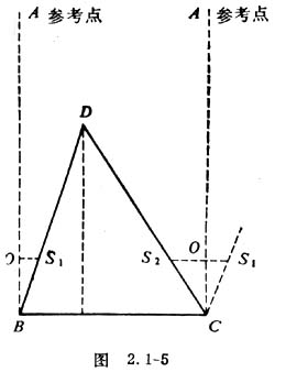 2.实际测量时,并不一定要求开始时远处的参考点与被测物体、小孔在同一直线上。可先在B处通过小孔、标尺中点O观察参考物,同时记下观察被测物体的视线在标尺上的读数OS1,然后沿垂直于观察参考点的视线方向移动视差观测器到位置C,再记下观察被测物体D时的视线在标尺上的读数OS2,并将BS1平移至CS1,如图2.1-5所示。其中