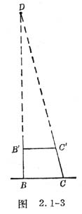 如图2.1-3,由B点观察被测点D,记下B点位置和BD方向。沿BD的垂直方向将观察点由B点移到C点重新观察D点,记下C点位置和CD 方向。在BD和CD线上截取BB′=CC′。由于BD>>BC,故B、C可以看成以D为圆心,DB为半径的圆弧上的两点,所以