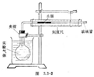 3.用图3.3-2装置进行实验前,要用称质量法(空瓶质量和盛满水后的质量的差值)求出烧瓶容积,并用游标卡尺设法测出玻璃管内径,求出刻度尺最小刻度所对应的管的容积值;实验时,水必须淹没全部烧瓶。所用烧瓶要大于 SPAN>100毫升,所用直角玻璃管内径不大于2毫米。