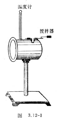 实验装置如图3.12-1所示。圆柱形金属盒有一个十分光亮的底面。上侧面有开口,开口旁边有一小孔,用来插入温度计。环形金属片套在金属盒上,它的一面也是十分光亮,并与金属盒的光亮面在同一平面内。金属盒和环形片用胶木垫圈隔开,防止相互间的热传导,搅拌器插在开口中。