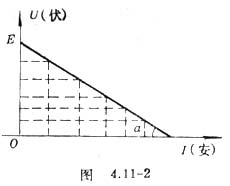 在坐标纸上,用横轴表示电流I,纵轴表示路端电压U,选取适当比例,描出所记录的各组数据所对应的点,将这些点连成一条直线。如图4.11-2,连线应使尽可能多的点 在直线上,并使直线两边的点尽可能对称。