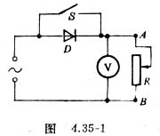 1.按图4.35-1,将硅二极管D与滑动变阻器R跟6—8伏交流电源组成电路。开关S跟二极管并联,电压表跟变阻器并联。