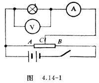 1.按图4.14-1连接电路,开始时,滑动变阻器滑片应置于最小分压端,使灯泡上的电压为零。