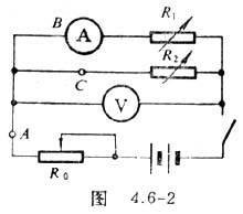 1.按图4.6-2接好电路,闭合开关后读出电流表、电压表读数I1和U。将电流表在C、A处分别串接入电路,记下它的读数I2和I。