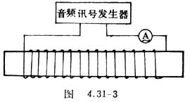 1.在图4.31-1中,撤去变阻器、学生电源和交流电流表,用音频讯号发生器代替学生电源,用多量程交流电流表代替交流安培表,利用讯号发生器的增益控制代替变阻器,接成如图4.31-3所示的电路。