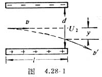电子束以速率v垂直于电场方向进入电压为U2的匀强偏转电场时,将作轨迹为抛物线的运动,若偏转极板长为L,板间距离为d,则偏转距离