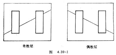 J2426型变压器是专为高中学生物理实验而设计的,它的特点是在低的交流电压下使用(配合学生电源),配有两个副线圈,经过拆卸和组装后可分别成为升压或降压变压器。这种变压器共有三个线圈,技术参数见表1。变压器的铁心是可拆开的,铁心形状呈斜山字形。组装降压变压器时,将线圈Ⅲ套在线圈巨的外面,然后往线圈孔中插斜山字形铁心片(高硅钢片),每层两片对插,层与层之间交叉放置,如图4.39-1所示。插入硅铁片时要放正对准,不要划损漆包线和塑料框架。叠到一定厚度时可用小木锤轻击以使叠片紧密。当铁心全部装好后再套上塑料外壳即可使用。