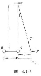 将一个带电小球A用细丝线悬挂,并将另一与小球A带同种电荷的带电球B与它靠近,且受B的静电斥力作用而发生偏移,如图4.1-3所示;测量A球的质量m,测量悬点到A球球心的长度L和A球偏移的距离d。当L>>d时有F=mgtgθ=mg(d/L),由此即可以得出小球A所受到的库仑力。