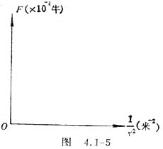 5.根据实验数据作出F-1/r2图象(图4.1-5)。让学生作出结论。