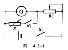 1.在图4.8-1所示电路中,如果R>>R′,则S2< SPAN style="FONT-FAMILY: 宋体; mso-ascii-font-family: 'Times New Roman'; mso-hansi-font-family: 'Times New Roman'">不论是否闭合,电路中的总电流保持不变。当调节R′使通过R′与通过G的电流相等时,可以认为G的内阻等于R′(一般情况下要求R0≥100R′)。