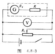 (1)按图4.8-3接好校准电路。滑动变阻器R1采用分压接法,开始时它的滑片置于分压最 小的位置。电源用2节干电池。虚线框内为改装后的电压表,V为标准电压表。