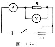3.金属丝电阻的测定,按图4.7-1连接电路。金属丝R一定从它的端点接入电路。滑动变阻器R0先调至阻值最大的位置,闭合开关,根据电阻丝的额定电流和电流表、电压表的指针位置,适当调节变阻器的阻值大小,使电流表和电压表指针在刻度盘的1/3-2/3的区间。改变电压三次,读出三组V、I值,由欧姆定律R=U/I算出金属丝的电阻R,再由公式ρ=(S/L)R求得金属的电阻率。