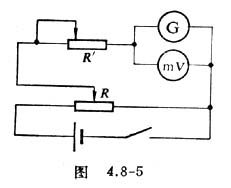按图4.8-5接好电路。mV为以毫伏为单位的电压表,简称毫伏表,G为待测电表,R′为保护电阻。闭合开关后,先调节滑动变阻器R,增大电路中的电压,再慢慢减小R′的电阻使G表的指针达到满刻度。这时毫伏表上的读数即为G表的满偏电压Ug。由于< /SPAN>G表的满偏电流为已知,由欧姆定律即可求出检流计的内阻: