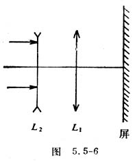 2.利用图5.5-6所示光路图也可以测出凹透镜的焦距。平行光线射向共轴的凹、凸透镜L2 、L1后在屏上得到会聚点,这时L1与L2之间距离为a。取走L2,在光轴上置点光源S,当S与L1相距b时,S的像又在屏上出现。由以上实验数据怎样求出凹透镜的焦距?