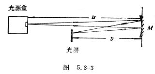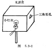 凹面镜及其支架(J2502型),方座支架(J1102型),小碗,编织针(30厘米左右),米尺,光源盒(一个四方形小盒,一壁上开一个三角形孔,孔上蒙一层半透明塑料膜,盒内装有小灯泡,盒底装有支杆,如图5.3-1所示),光具座(J2507型),光屏,自行车滚珠,小重垂线。