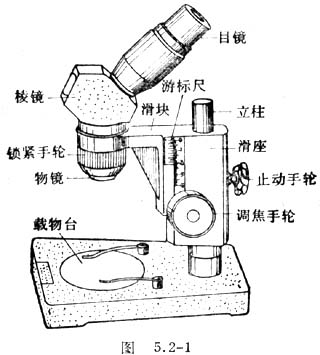 毫米的主尺和游标尺,显微镜上下移动的距离可从游标尺上读出。