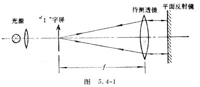 把J2507型光具座中所附的光源插在光具座一端支架的插孔中,“1”字屏、待测透镜(焦距约300毫米)和平面反射镜依次插在光具座滑块的插孔里,“1”字屏与平面反射镜之间的距离要大于待测透镜的焦距。调节光源、“1”字屏、透镜和平面反射镜等高并与光轴垂直。点亮光源灯泡,照明“1”字屏,移动“1”字屏或透镜,改变“1”字屏与透镜之间的距离,并微微转动平面反射镜,直到“1”字屏上出现清晰的1字形倒像为止。从光具座标尺上读出“1”字屏与透镜之间的距离,就是待测透镜的焦距f。