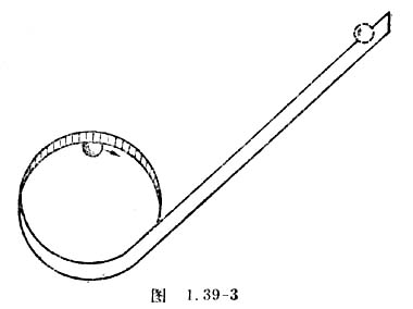 取一长条硬纸板,或者铁皮,按图1.39-3所示的结构使一边弯成圆圈状,另一边成为斜面。使一颗弹子从斜面上滚下,逐步提高弹子释放点的高度,你就可以看到弹子越顶而不落下来的现象。你能运用向心力的知识说明产生这种现象的原因吗?