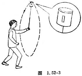 实验时拿住留在盒外的线的一端,转动手腕使笛盒在竖直平面内旋转(图1.52-3),你就能听到一种奇怪的声音。改变侧壁上孔的大小,或者在盒内塞少许棉论,音调都会发生改变。你能用空瓶笛实验中发现的规律,对胶卷盒音笛的音调变化作一个大致的解释吗?