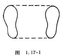 人能够站立,主要是因为竖直向下通过重心的重力作用线通过了两脚围成的支面,即图1.17-1中虚线所围的面积。在单脚站立时,支面缩小到只有一只脚掌面的大小,通过重心的重力作用线只能落在支面之外,所以不能站立。只有在改变原来的姿势后,让它落在支面内才行,而改变姿势是这里所不允许的,因此便不能站立了。
