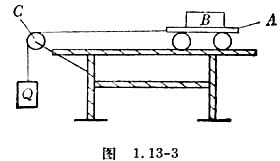 (三)用停表和砝码测质量如图1.13-3所示,A为一平板小车,B为待测物体,C为滑轮,用一定强度的跨过滑轮的线,把小车和重物Q相连,现有足够使用的砝码一盒,和一块停表,请使用上面的器材,测定B物体的质量。